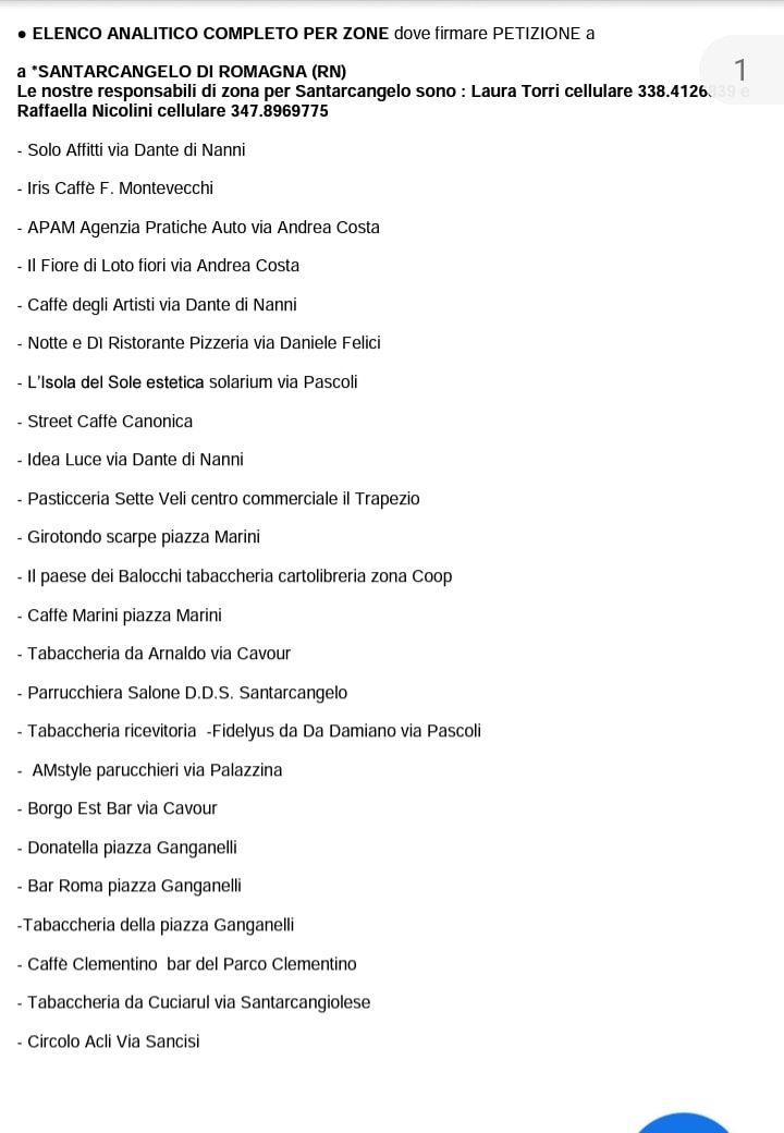 IMPORTANTE : ecco redatto ELENCO ANALITICO COMPLETO PER ZONE dove firmare PETIZIONE